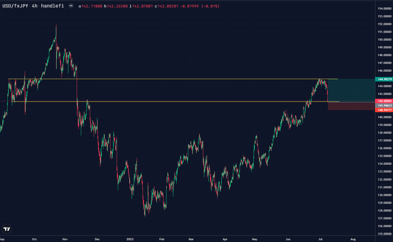 USD/ JPY hit heavy resistance at 145 and reacted with a sharp pullback into resistance at 142. If it is to remain in the uptrend it should elicit a response from this level. The target would be previous highs at 145 with an invalidation if it is to lose this level at 141.
